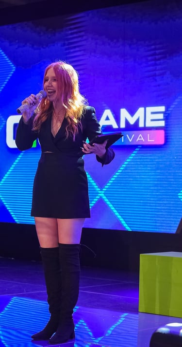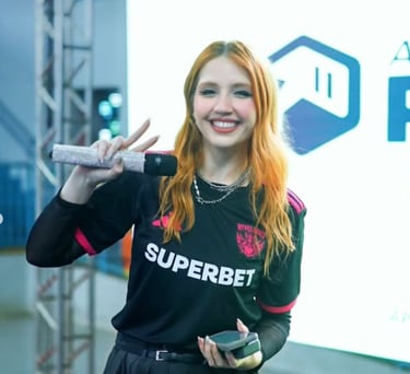 Primeira apresentadora dos maiores eventos gamers e geek de Goiás. Seu talento se expandiu no centro-oeste, dominando palcos do Cerrado. Go Game Festival, Videogameshow, Copa Goiânia de eSports e +.
